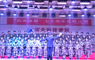 70年前我们的前辈顶着牺牲,走出国门守卫边线。70年后的今天我们用我们的方式来感恩他们。在河科的校园里随处可见各专业各队的排练场景。歌声中都是满满的爱国情怀,护理学子满腔热血的歌声唱走了秋天的寒冷,留下了英雄的温暖。
