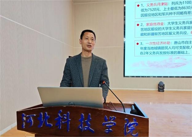 宣讲中,尚兴伟老师介绍了大学生报名参军的基本流程和报名条件 ,并对国家、地方、学校三级优待政策进行了介绍,详细讲解了部队发展、学业发展、兵役资助、家庭优待金等政策的具体内容。他介绍了近年来学院作为校征兵工作先进单位在征兵方面取得的优秀成果,也鼓励各位同学能够续写学院的优秀传统,积极响应国家号召,携笔从戎固国防、报效祖国立新功。
