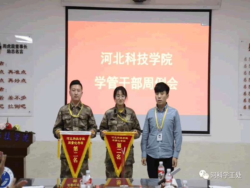 会上,学工处通报了各二级学院各项工作量化考核结果,对两校区行为规范、行进队列、志愿服务、内务卫生、量化考核等军校式管理教育先进学生队进行表彰。随后,由吴少帅副校长、倪岩处长等学管领导对两校区量化考核前三名等受表彰的先进队伍进行表彰颁发流动红旗。