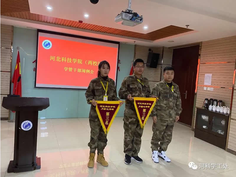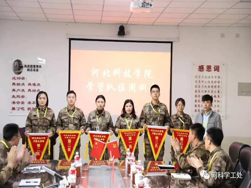 会上,学工处通报了各二级学院各项工作量化考核结果,对两校区行为规范、行进队列、志愿服务、内务卫生、内务卫生免检、量化考核等军校式管理教育先进学生队进行表彰。随后,由吴少帅副校长、倪岩处长等学管领导对两校区量化考核前三名等受表彰的先进队伍进行表彰颁发流动红旗。