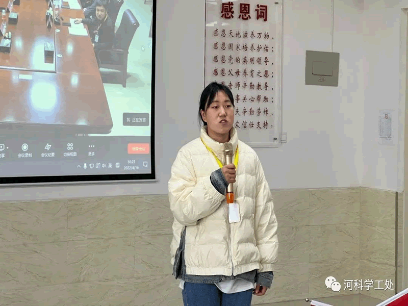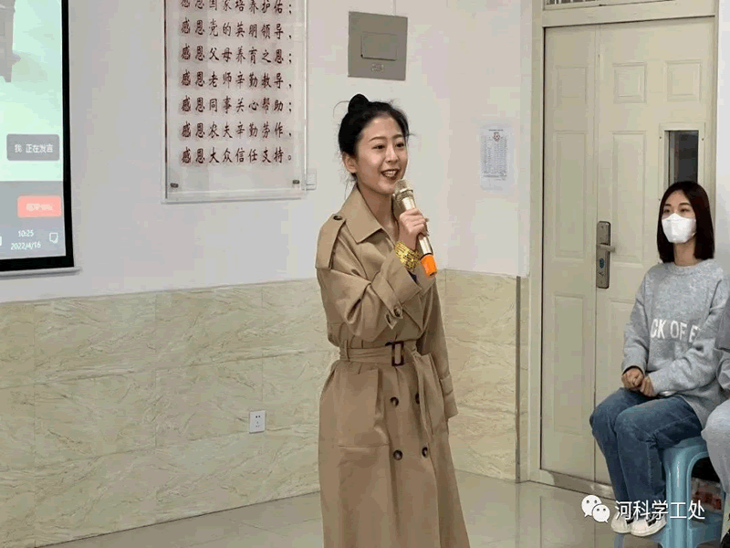 颁奖仪式结束后,我校4名外聘辅导员进行自我介绍,她们表示将在试岗期间认真学习贺阳文化,深入理解我校军校式管理教育的内涵,并将及时转换身份,熟知高校辅导员岗位职责并加以践行,努力融入我校学管队伍这个大家庭。