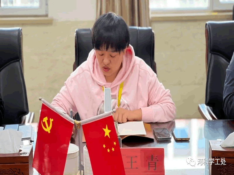 会议听取汇报后,为检验我校学管干部的工作成果以及应变、演讲能力,会上随机抽取了辅导员贾子川进行了经验分享,贾子川为大家分享了自己所带学生队伍的经验,他提到,要用纪律来规范和约束大家的日常行为,辅导员要耐心引导,学生队伍要加强规范建设,从而促进集体团结。
