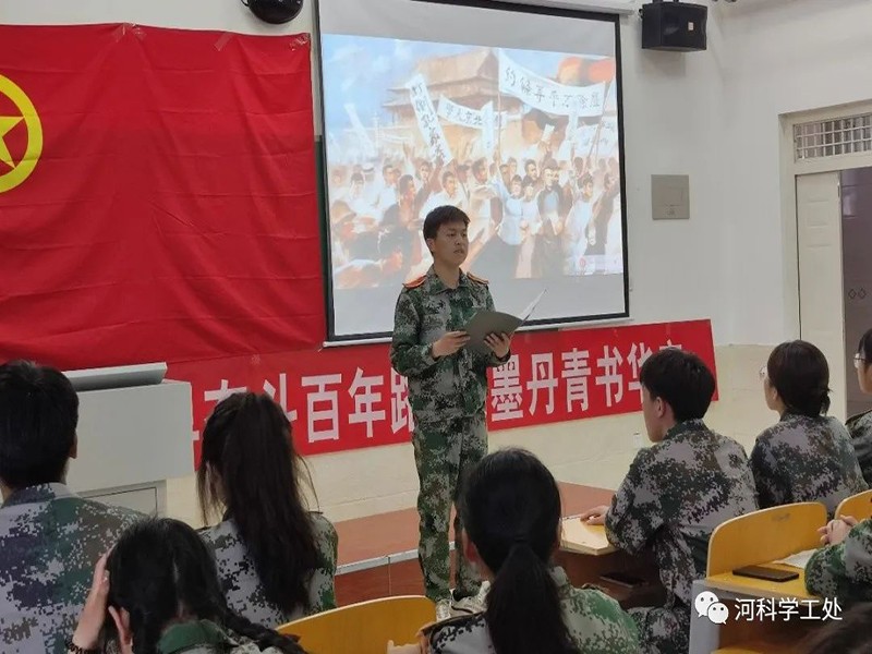 学校还开展了“追寻奋斗百年路,笔墨丹青书华章”为主题的宣讲活动,此次活动意在引导、激励广大青年学生继承和弘扬五四运动光荣传统,引导青年团员“学党史,知团情”,积极弘扬五四精神,加强青年团员意识教育,激励广大青年学生“高举团旗永远跟党走”。在此次宣讲中6名学生从不同角度用真挚而有力的语言表达了自己在我校军校式管理模式的影响下对于五四精神和建团百年的独特理解,收获了阵阵掌声。