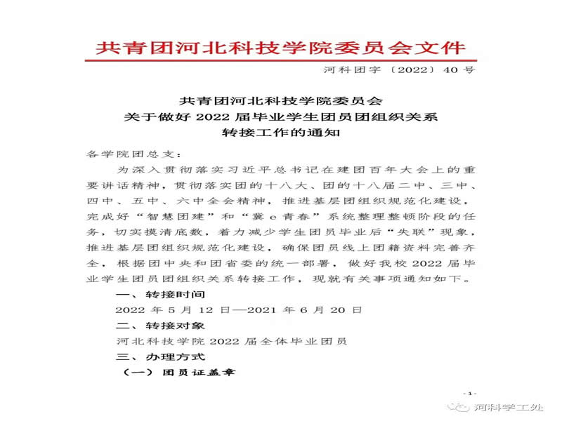 共青团河北科技委员会关于做好2022届毕业学生团员团组织关系转接工作的通知