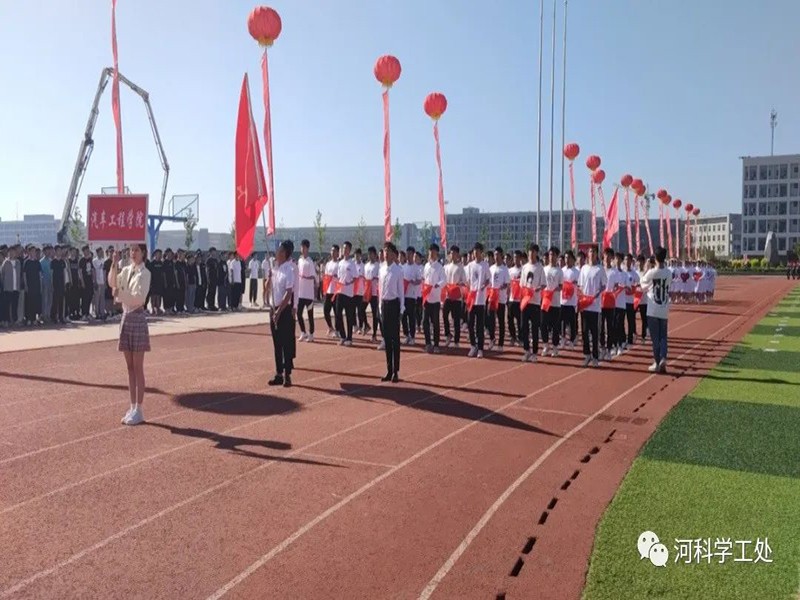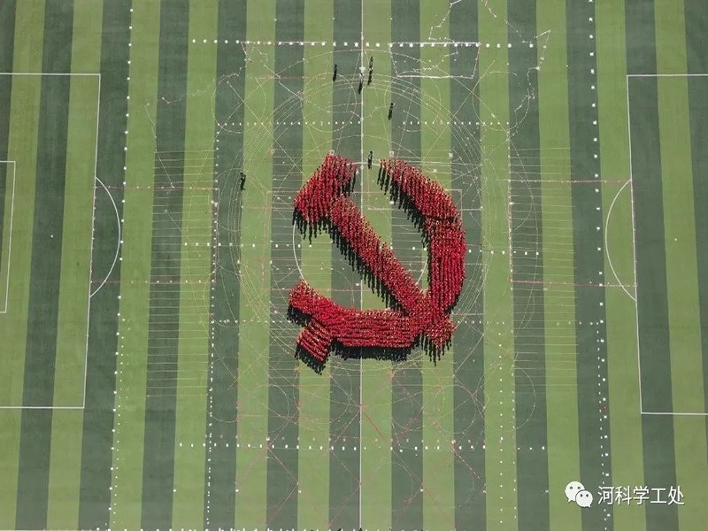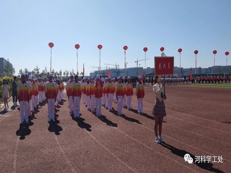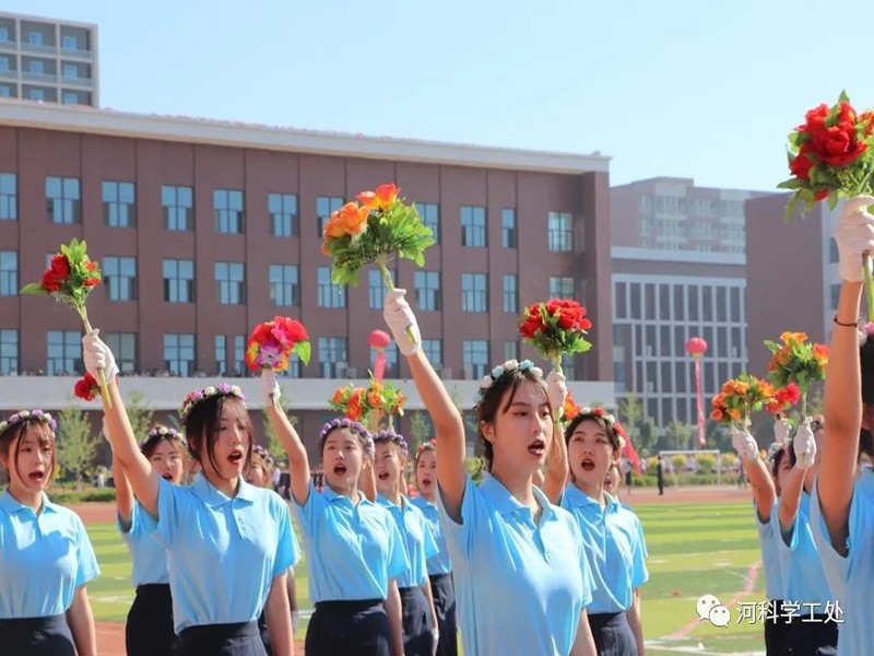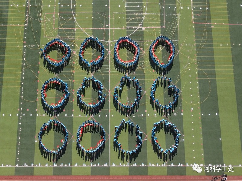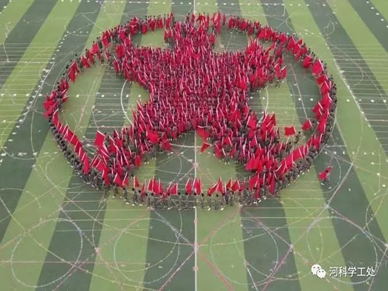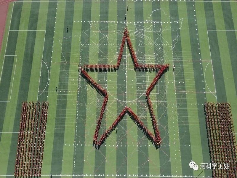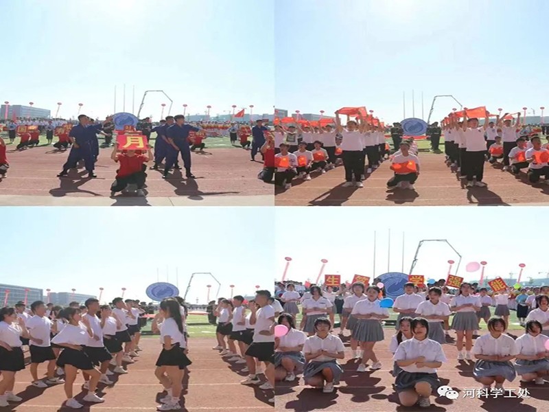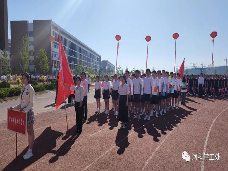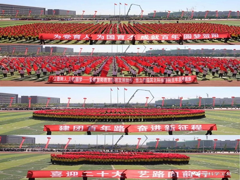 在第二篇章“恰风华正茂 庆建团百年 怀千秋伟业”中,智能制造工程学院的千名学子组成的方队手拿红旗,他们挥动红旗,整齐有力地为观众呈现出“1922、2022、太阳、团徽、爱心”等图案,场面无比震撼,展现河科学子锐意进取、蓬勃向上的精神风貌,在退场时气势磅礴的口号响彻河科,他们胸怀着“强身健体,树立祖国,争创示范,再现绚烂”的远大志向要为本届运动会完美的画上一个庞大的惊叹号。