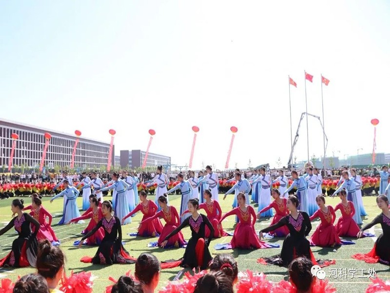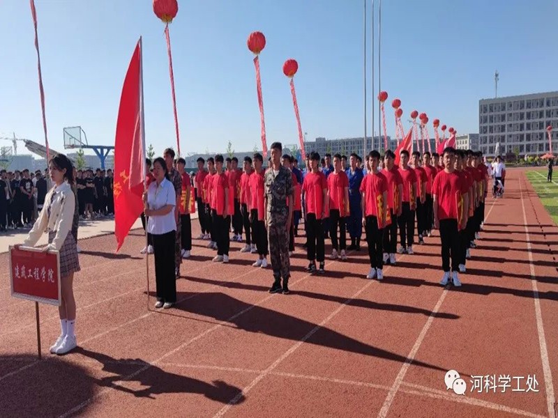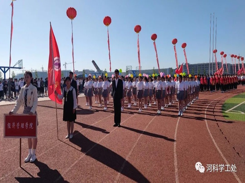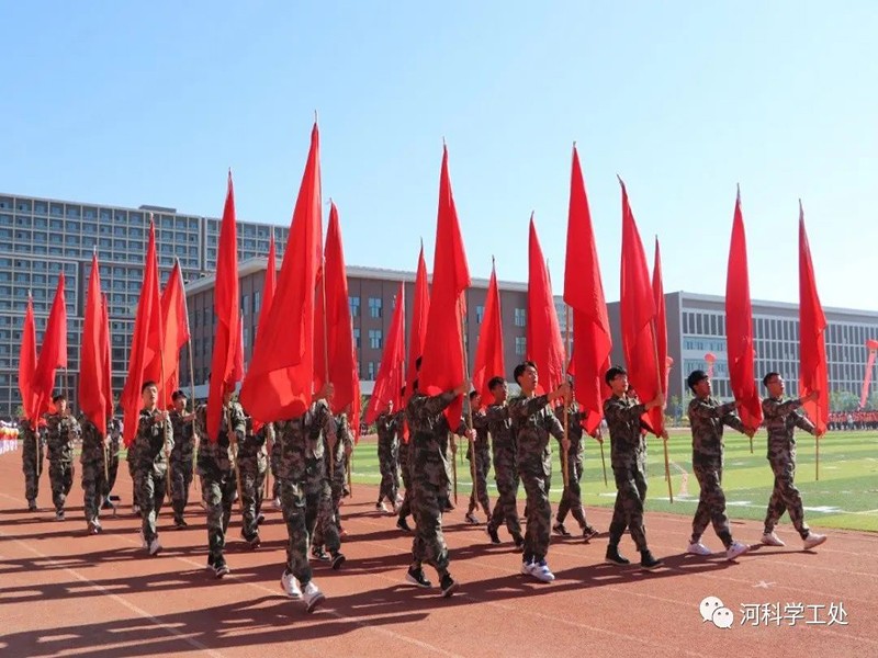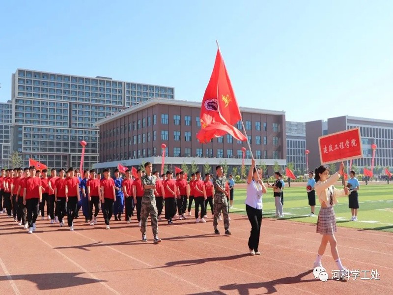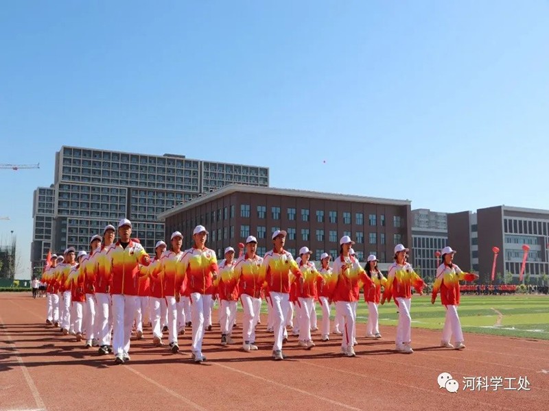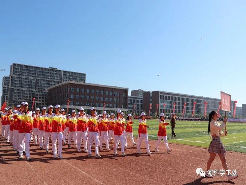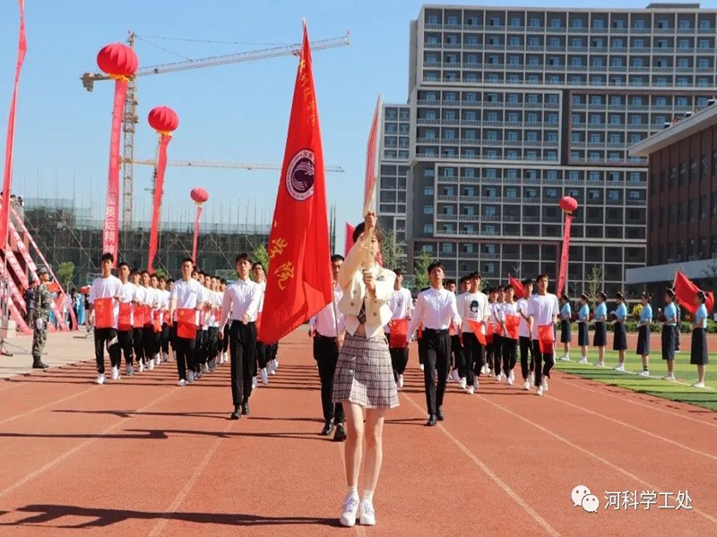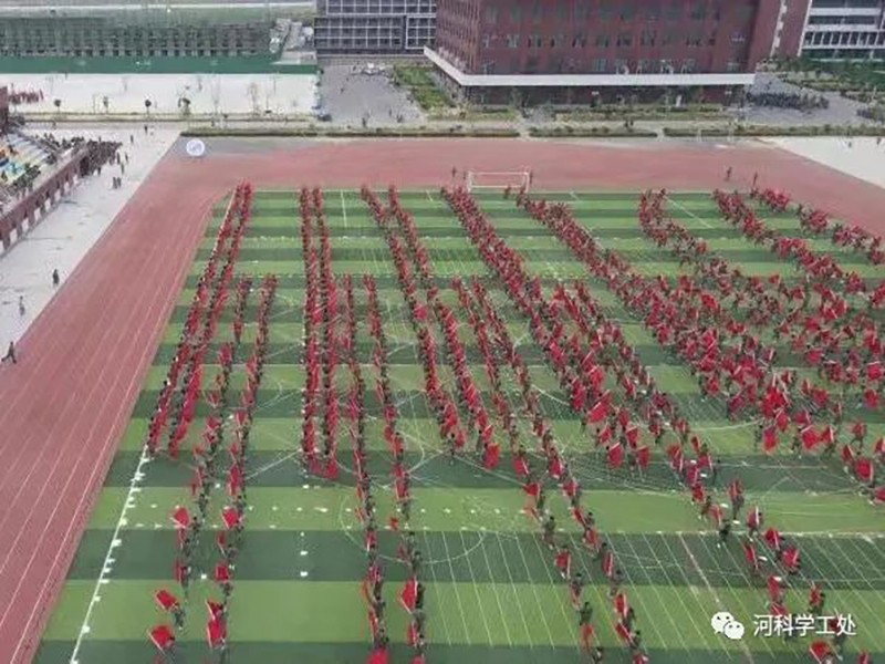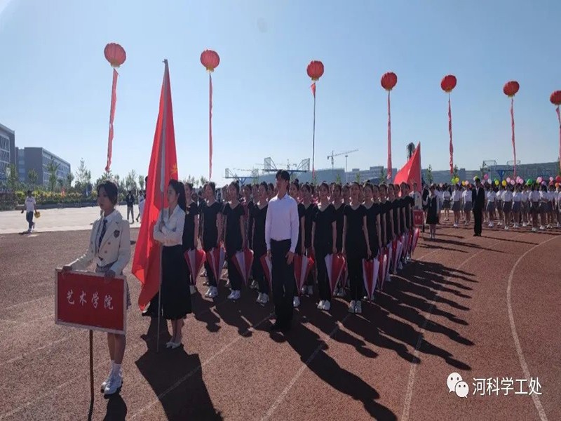 在第二篇章“恰风华正茂 庆建团百年 怀千秋伟业”中,智能制造工程学院的千名学子组成的方队手拿红旗,他们挥动红旗,整齐有力地为观众呈现出“1922、2022、太阳、团徽、爱心”等图案,场面无比震撼,展现河科学子锐意进取、蓬勃向上的精神风貌,在退场时气势磅礴的口号响彻河科,他们胸怀着“强身健体,树立祖国,争创示范,再现绚烂”的远大志向要为本届运动会完美的画上一个庞大的惊叹号。