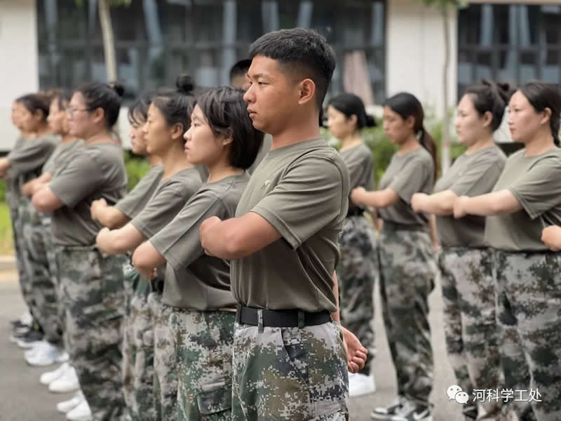 上午,烈日炎炎下,我校新入职辅导员们在第三教学楼前展开训练。他们站着直正挺拔的军姿,高喊着洪亮的口号,做着铿锵有力的一令一动,丝毫没有退缩和畏惧。