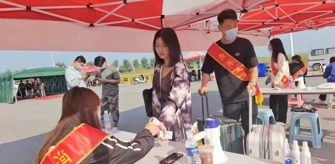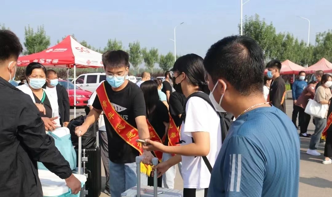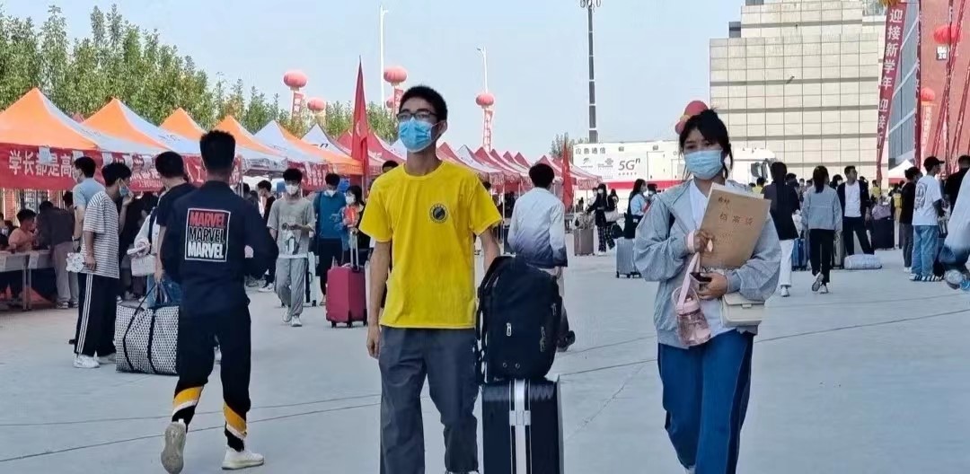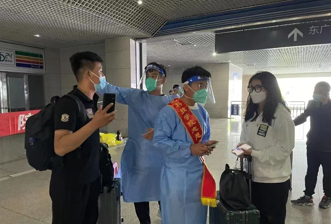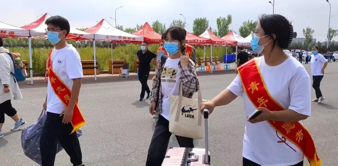 学生志愿者在火车站迎接2022级新生