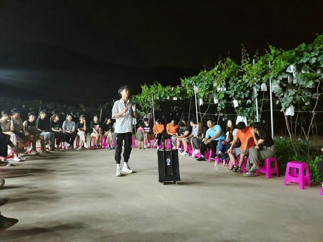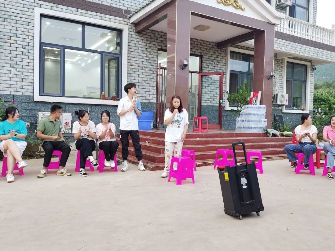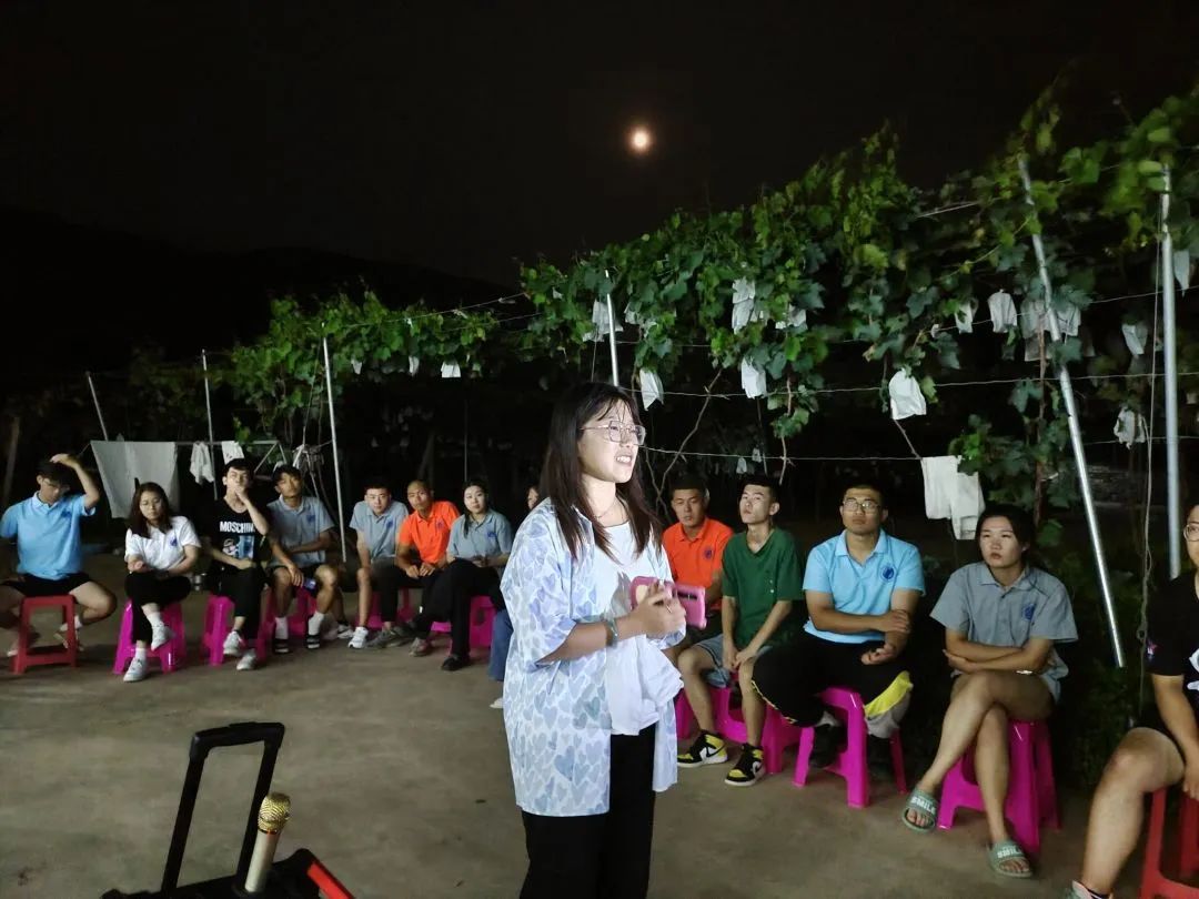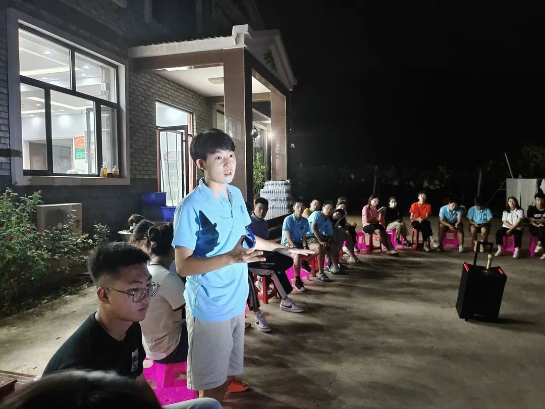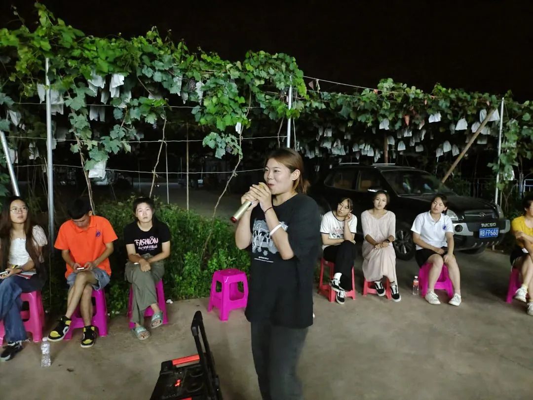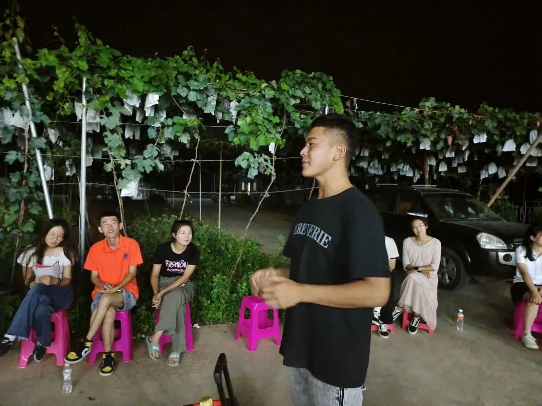 14日晚上,指导老师和社会实践小分队成员在院子里围坐成一个圈,开展“大风吹”“天黑请闭眼”素质拓展活动,随着活动的顺利进行,欢笑声一直萦绕着整个院子。在开展过程中,大家的心也在越来越近,越来越熟悉,也越来越敢表现自己。像跳舞,演小品,说相声等等的才艺展示,也在一遍遍刷新着同学们之间的印象。