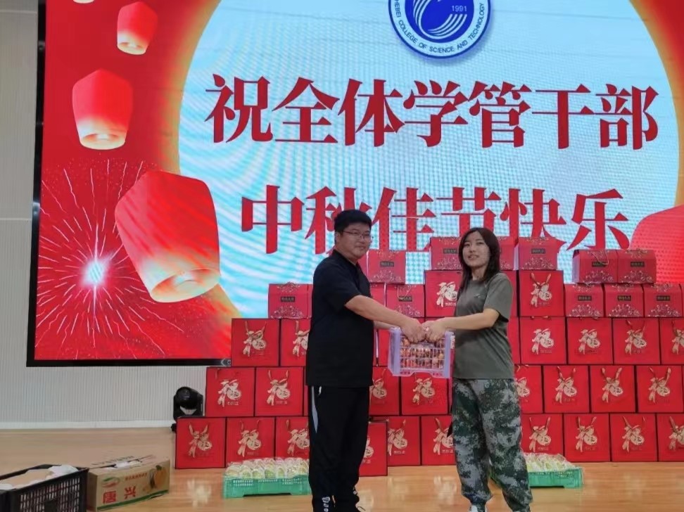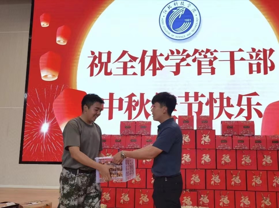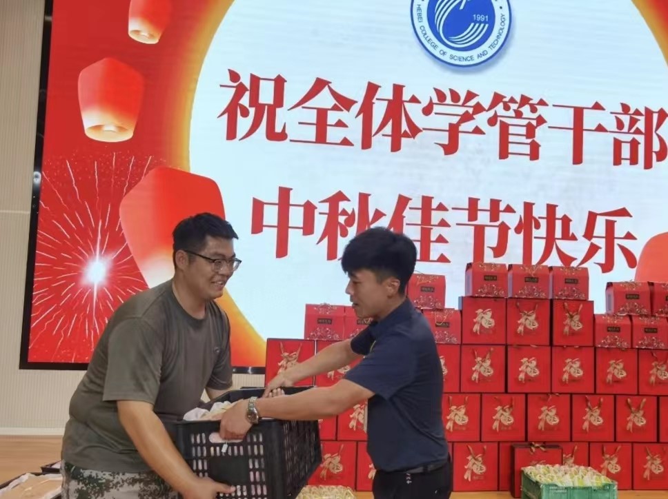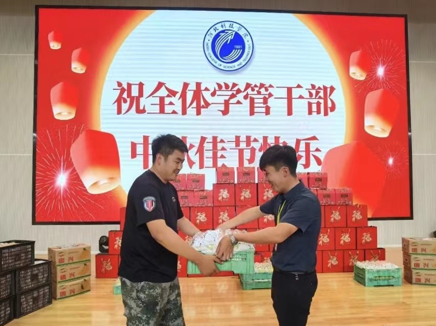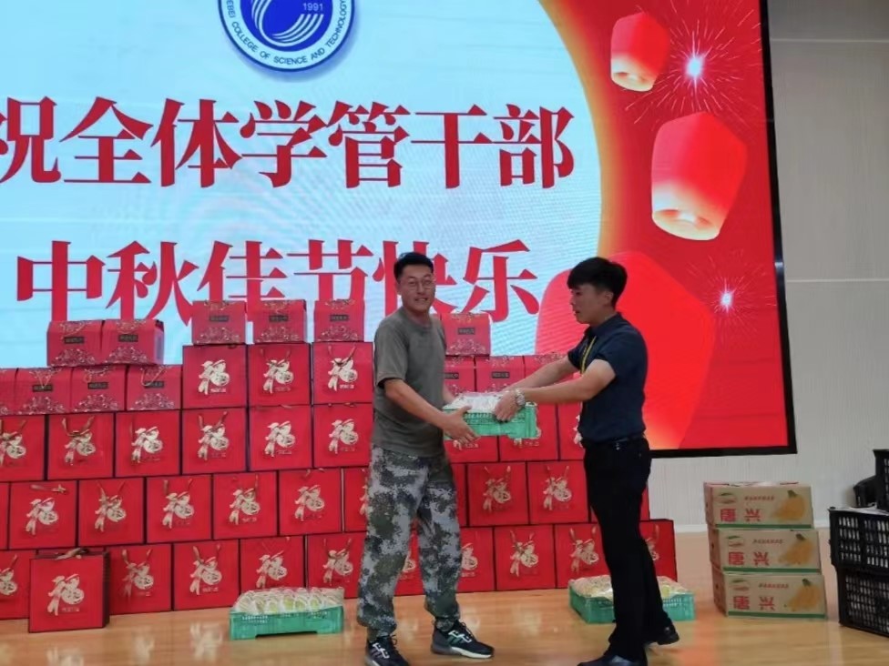 为感谢奋斗在各工作岗位上学管干部们的辛勤付出和无私奉献,让大家感受到节日的温暖,让beat365全体学管干部过一个幸福的中秋节,9月9日晚上20点,学工处倪岩处长,校团委书记、学工处副处长张艳海,副处长徐磊、刘江浩为全体学管干部以及军训教官发放中秋节福利,并送上学校的关怀与节日的祝福。