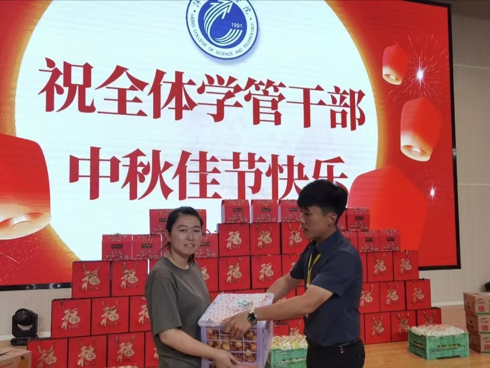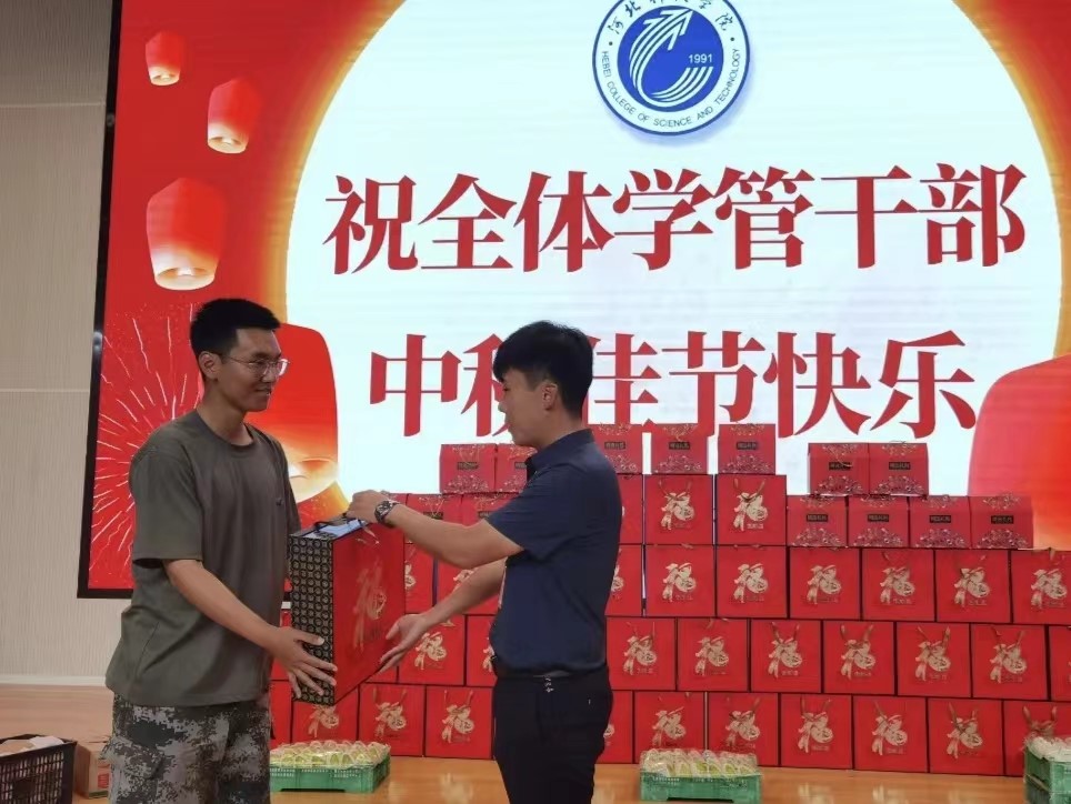 学工处领导为全体学管干部们精选了梨、苹果、香蕉、冬枣等水果以及中秋月饼,寓意着团团圆圆、甜甜蜜蜜,装载着满满的心意与祝福。
