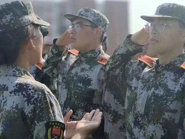 在这蓝天下,身着军训服的每一个河科学子,在烈日焦灼下依旧保持着高标准的动作练习。他们的正步走依旧昂首挺胸,面庞依然严肃,尽情彰显着河科色彩。相信在以后的军训中,我校2022级新生能抓住这次学习的机会,从假期的慵懒中走出,挺直腰板,唱响这嘹亮的军歌,迎接美好的大学生活。