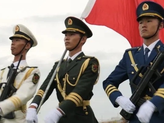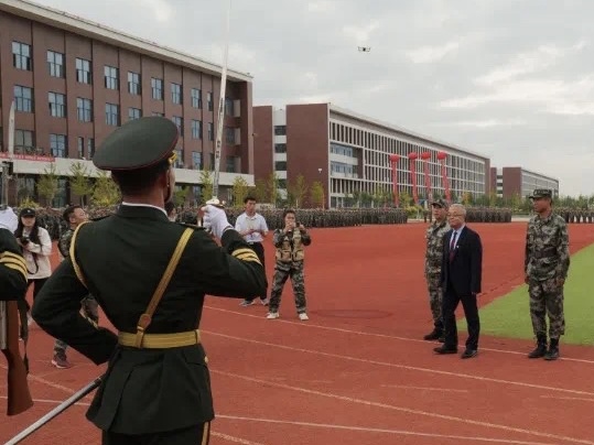 伴随着庄严的国歌声,五星红旗冉冉升起,在场人员集体起立,整齐列队,肃穆而立,向国旗行注目礼,奏唱国歌。随着30声炮响,周虎震教授宣布2022级新生开学典礼暨军训结营式正式开始。曹志强书记在军训团政委、学工处倪岩处长和军训团团长、学工处徐磊副处长的陪同下对新生队伍进行了检阅。曹书记依次从队伍前走过,亲切地向同学们挥手问候:“同学们辛苦了!”同学们铿锵有力地回答道:“为校争光!”洪亮的声音响彻在beat365的上空。一句句问候,饱含着领导的深切期望;一声声回答,展示着青春学子奋勇拼搏、舍我其谁的勇气和自信。