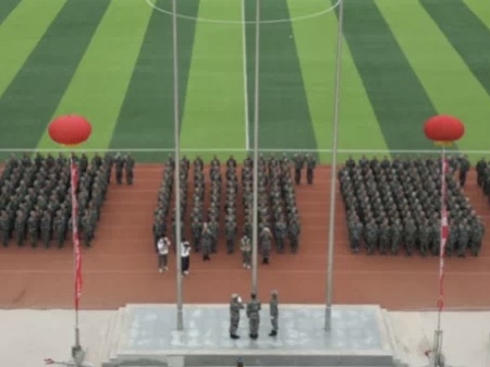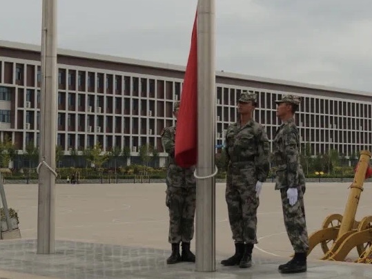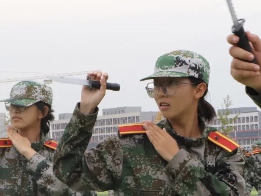 紧接着映入眼帘的是阅兵式、分列式,军体拳、匕首操等特色表演。国旗护卫队携国旗走在首位,新生方阵沿跑道踏着整齐的步伐,目光坚定,正步经过主席台,同学们个个精神抖擞,一声声铿锵有力的口号,一道道坚定不移的目光,展现河科人的激扬青春与蓬勃朝气;军体拳和匕首操的同学们精神抖擞、士气高昂,一系列动作一气呵成,处处体现出我校学子军人干练的作风,赢得现场络绎不绝的掌声与喝彩。
