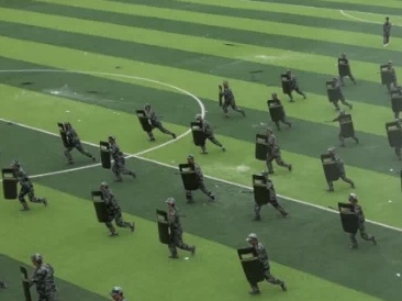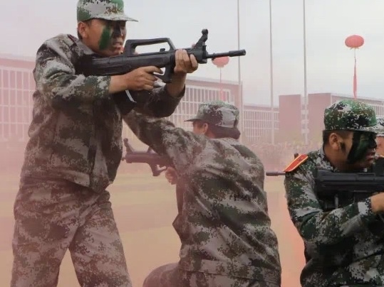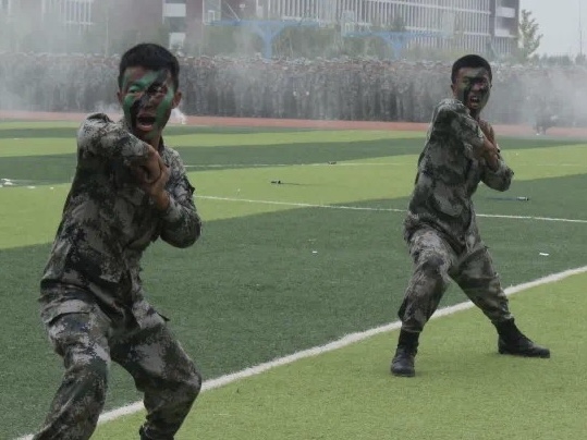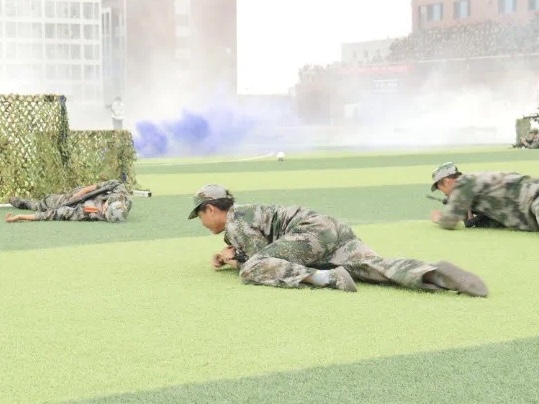 在党的二十大即将胜利召开之际,beat365全体参训学子在这个意义非凡的时刻,表演了特色枪战术表演,足球场上硝烟四起,同学们手持冲锋步枪,爆破点四起,模拟出战争场景,展现了我中国人民解放军抗日战争、解放战争中英勇无畏、不怕牺牲的顽强拼搏精神,同学们责任在肩、同志们壮志凌云,向党的二十大献礼,向人民军队致敬。