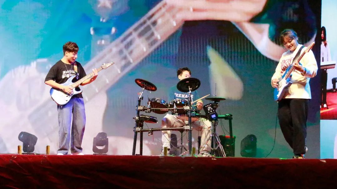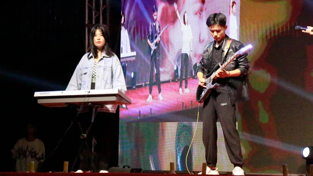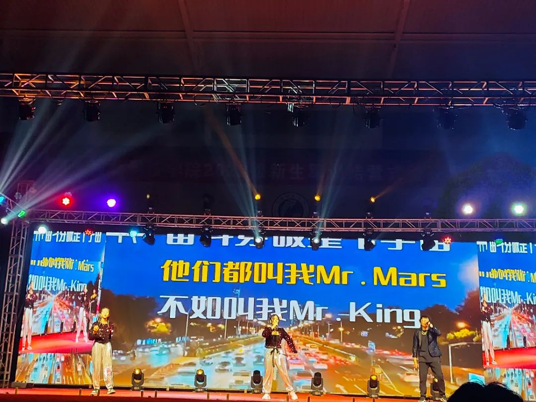 迎新晚会在大学生艺术团器乐团精彩的器乐演奏《特斯河之赞》中拉开了帷幕,从铿锵有力的旋律中感受到了激流滚滚的河水随着燥裂的节奏奔腾而出,化成一首融在滚滚重音中的狂野赞歌,将现场气氛瞬间点燃;大学生艺术团舞蹈团带来的爵士舞《latata》热情与动感交织,无不彰显着青春的活力,瞬间点燃了晚会现场的氛围,引来了台下无数的掌声和欢呼。