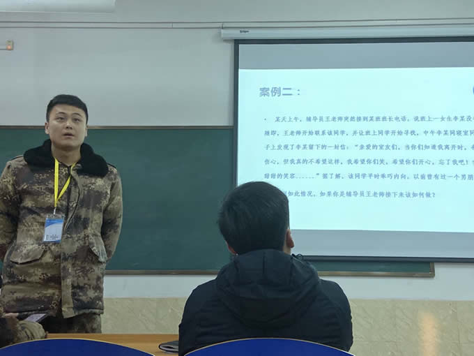下午2点整,下午场的培训正式开始,先是由计算机应用教研室的教研室主任余宁讲解了《PPT制作学习》,介绍了PPT的对象动画、对象动画使用及使用过程中需要的注意事项、PPT的书写效果等等。随后进行的是学生管理谈心谈话环节,各个学院辅导员用鲜明的案例分析营造了生动形象的课堂氛围,揭示了有效沟通的重要意义,并结合自身实践经验,阐述了自己的观点。