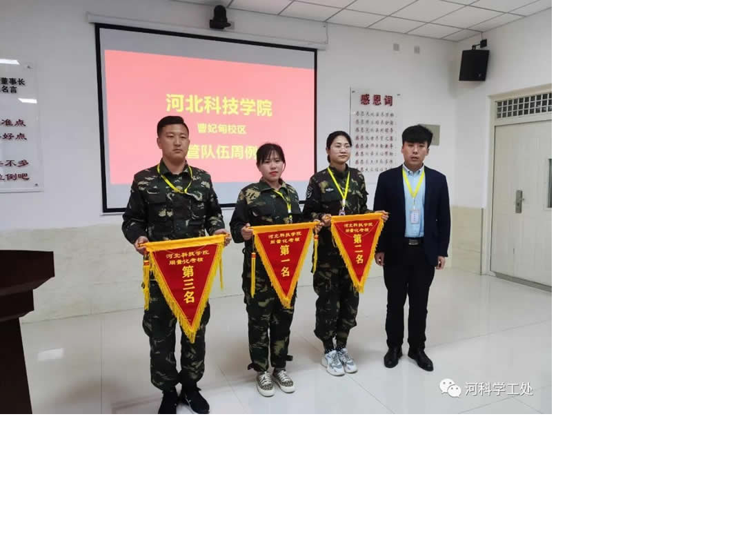 经验与心得分享结束后,学工处公布本周两校区量化考核排名,播放本周宿舍内务卫生的优缺的照片及队列行进的视频,对两校区行为规范、行进队列、志愿服务、内务卫生、量化考核等军校式管理教育先进学生队进行表彰。由吴少帅副校长、倪岩处长等学管领导对两校区量化考核前三名等受表彰的先进队伍进行表彰颁发流动红旗。