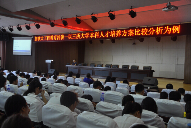马主任于上半年公派前往加拿大阿尔伯塔大学进行交流学习,学习期间,马主任将阿尔伯塔大学的课程体系进行了系统的分析,并融入到本校的课程体系建设中来,取得了较好的效果。本次讲座,马主任将阿尔伯塔大学先进的教育理念、专业的设置及治理的模式等逐一为我们做了讲解,并与国内各高等学校作对比,找出我国高等教育不足之处,引得我们的思考。