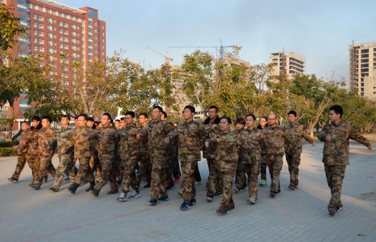 此次训练的内容有:停止间转法、齐步走、跑步走、正步走、并分组练习。
