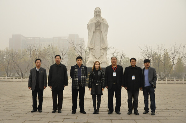 双方在孔子像前合影留念