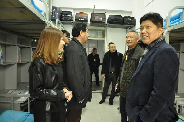 在学生公寓,代表团随机参观了11、12号楼部分宿舍,对宿舍内整齐洁净的环境赞不绝口,并对我校准军事化管理取得的成果给予了高度肯定。