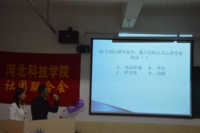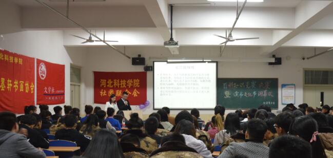 11月21日晚,我校百科知识竞赛决赛暨第三届读书文化节闭幕式于五教714举行,校团委副书记张艳海,以及各学生组织负责人出席。