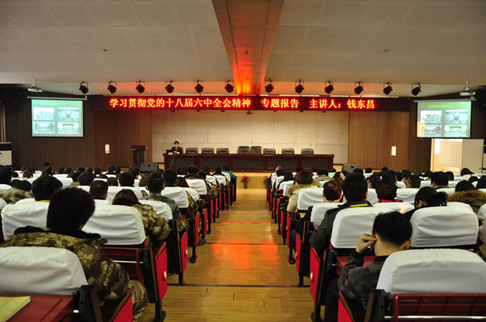 12月7日下午,我校党委第一副书记钱东昌为我校师生作学习贯彻党的十八届六中全会精神专题报告。校领导刘更谦、朱红素、马红亮出席,全体教职工及300余名学生党员、入党积极分子参加了报告会。