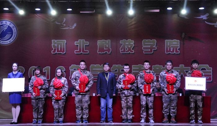 伴随着庄严的国歌声大会拉开帷幕,会上对 “校三好学生”、“校优秀学生干部”、“校优秀团干部”、“校优秀共青团员”、“孝老敬亲先进个人”、“准军校管理示范队(国旗班、新老预备役、八一操)”、“准军校管理示范队优秀指导教师”、“河北省优秀学生干部”、“河北省三好学生”、“河北省社会实践先进个人”、“莲池区优秀共青团员”、“校优秀班集体”、“校五四红旗团支部”、“河北省级先进德育个人(辅导员)”、“河北省优秀班集体”、“莲池区五四红旗团委”、“国家励志奖学金”、“国家奖学金”等18个奖项的获奖者进行了表彰,参会领导分别为获奖者颁奖。