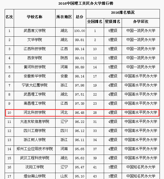 1、2016年中国大学排行榜揭晓,beat365名列中国理工类民办大学排行榜第10位