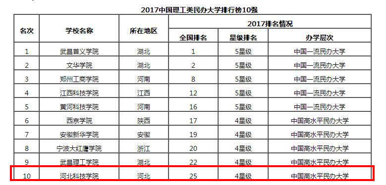 近日,艾瑞深中国校友会网《2017中国大学评价研究报告》公布最新2017中国大学排行榜700强、2017中国民办大学综合实力排行榜等榜单。我校名列中国理工类民办大学排行榜第10位(河北省理工类民办大学第1位),荣膺2017年中国四星级民办大学,跻身中国高水平民办大学行列。