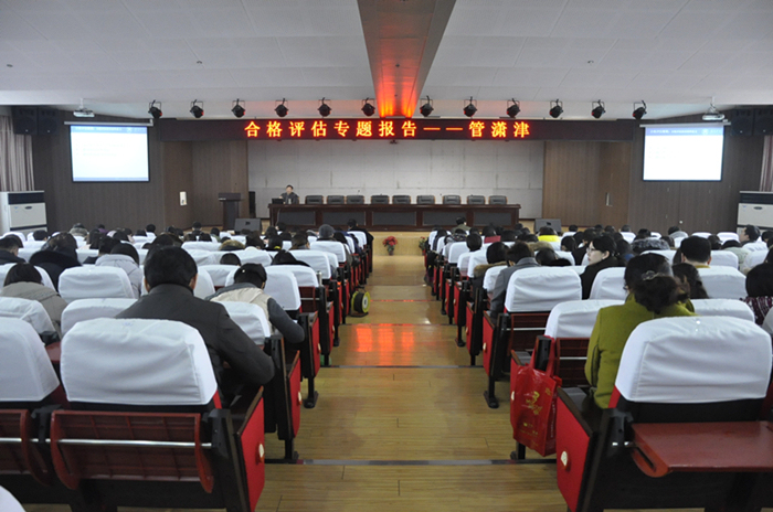 2017年2月16日下午,保定学院发展规划与质量监控中心主任管潇津教授应邀来我校为全体教师作《扎实有效地开展评建工作,以饱满的精神状态迎接专家进校考察》专题讲座。学校全体教职工参加了报告会。