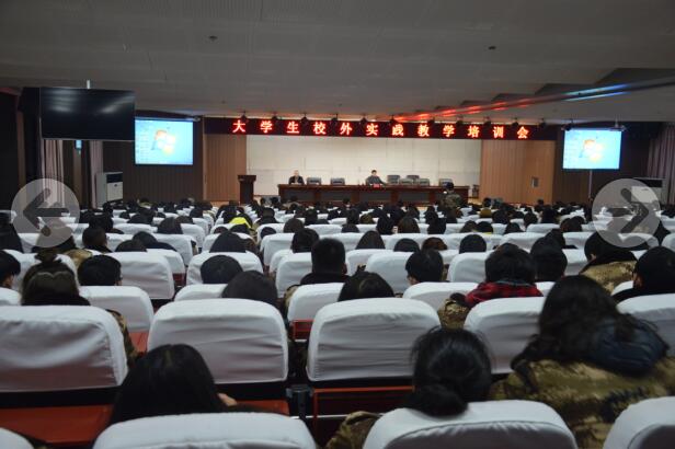 2月21日晚7:30,在五教12楼报告厅,贺阳公司董事长周虎震教授为我校大三学生做《大学生校外实践教学》专题培训。我校执行校长霍献育、执行董事周政阳,校党委书记刘更谦出席,校学工处处长张延峰、全体学管干部和我校600余名大三学生参加了此次培训。会议由我校副校长马红亮主持。
