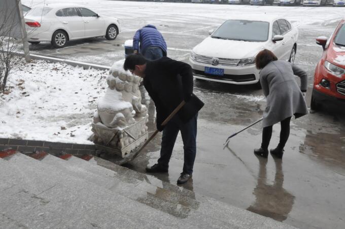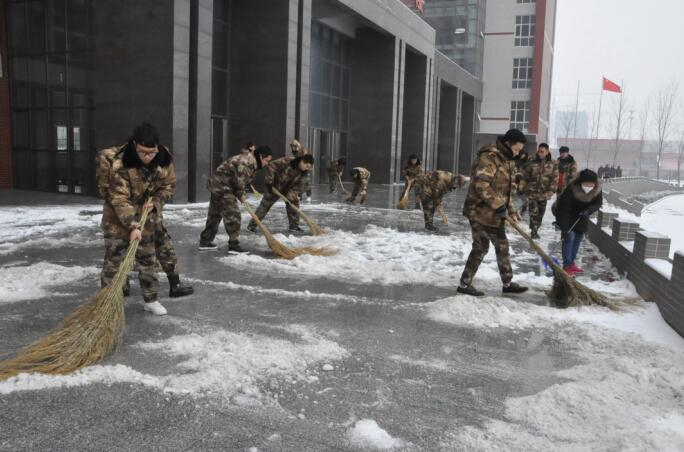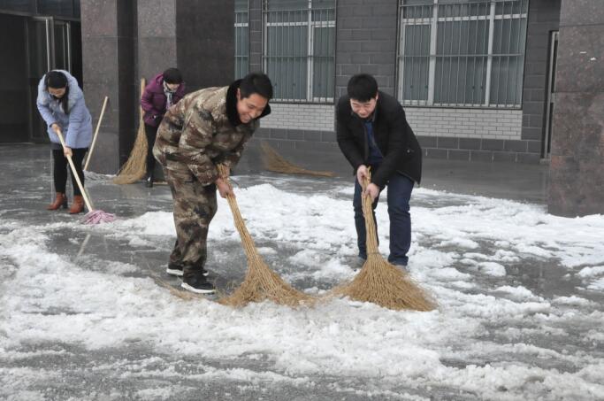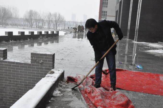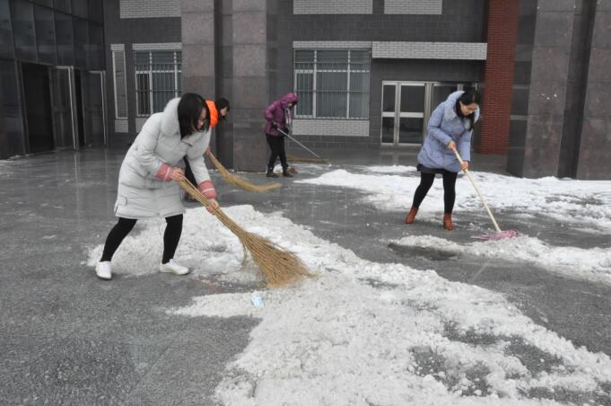 雪景虽然美丽,却给师生的活动带来不便。为了保证师生安全,22日一早,我校综合管理办公室、教务处、学工处、各二级学院教职工、劳动周学生纷纷出门清扫积雪。大家争先恐后,挥舞铁锹、扫帚与积雪展开了博弈。师情融积雪,温情似暖阳。学校就在这样的忙碌和欢笑中脱下了厚重的银装,换上整洁的外衣。