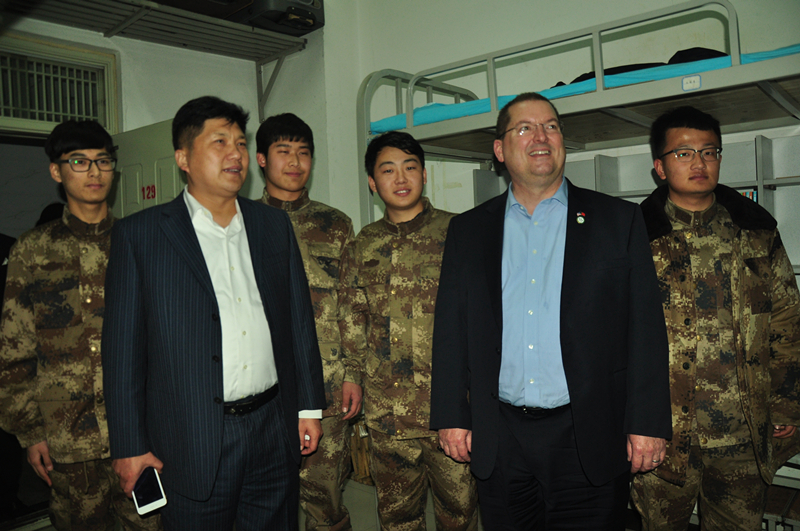 Robert G. Wilhelm博士,是北卡大学夏洛特分校研究与经济发展副校长,研究中心执行理事,机械工程与工程科学教授。他对我校整洁的学生宿舍,学生的精神面貌,以及周虎震教授对学生和蔼可亲的态度给予了高度赞扬。