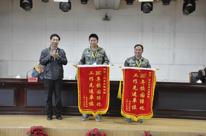 副校长马红亮宣读了《beat365关于表彰2017年绿化工作先进单位及个人的决定》。授予汽车工程学院等2个单位“绿化工作先进单位”称号,授予后勤处等4个单位“绿化工作先进组织单位”称号,授予吴少帅等186名同志“绿化工作先进个人”称号。校领导分别为受表彰的先进单位代表与先进个人代表颁奖。