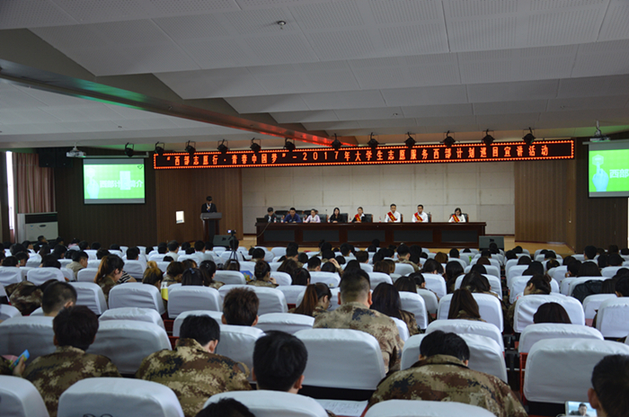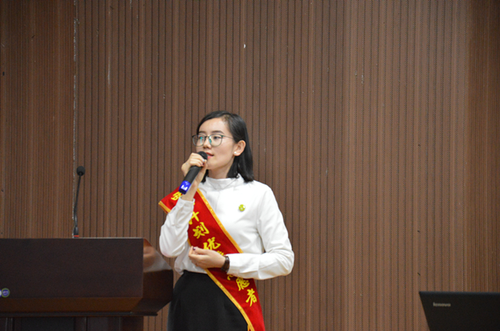 宣讲开始,西部计划优秀志愿者许聪聪向在座学生具体介绍了西部计划志愿者活动涵义以及政策保障,使大家对西部计划志愿服务活动有了初步的了解。