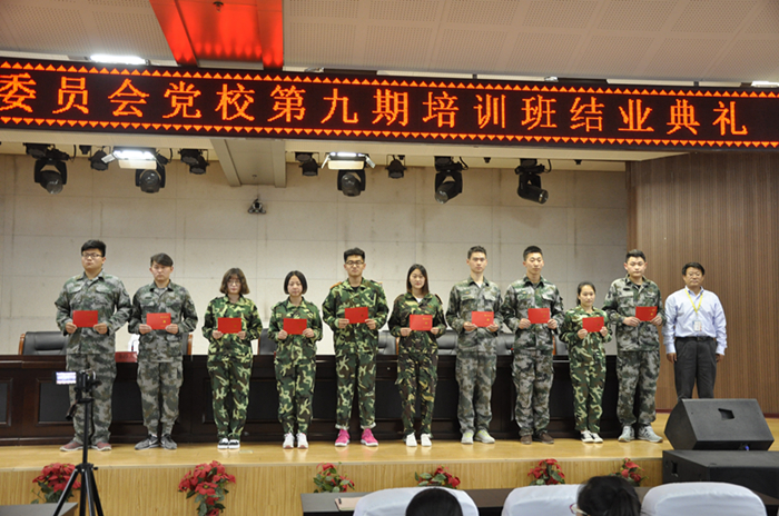 党校副校长田沃介绍了此次入党积极分子培训班的培训情况,宣读了《关于授予王鲁冀等423名学员第九期党校结业证书的决定》。校党委书记、党校校长刘更谦为本期培训班学员代表颁发结业证书。