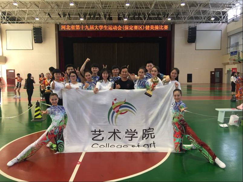 2017年5月7日上午,河北省第十九届大学生运动会(保定赛区)健美操比赛在河北金融学院正式开幕。本次比赛共有来自河北大学、河北农业大学等十所高校的健美操队参赛,设有男子单人、女子单人、竞技五人和有氧舞蹈四个比赛项目。我校健美操队由艺术学院舞蹈表演专业8名学生组成,张博文老师任教练员。