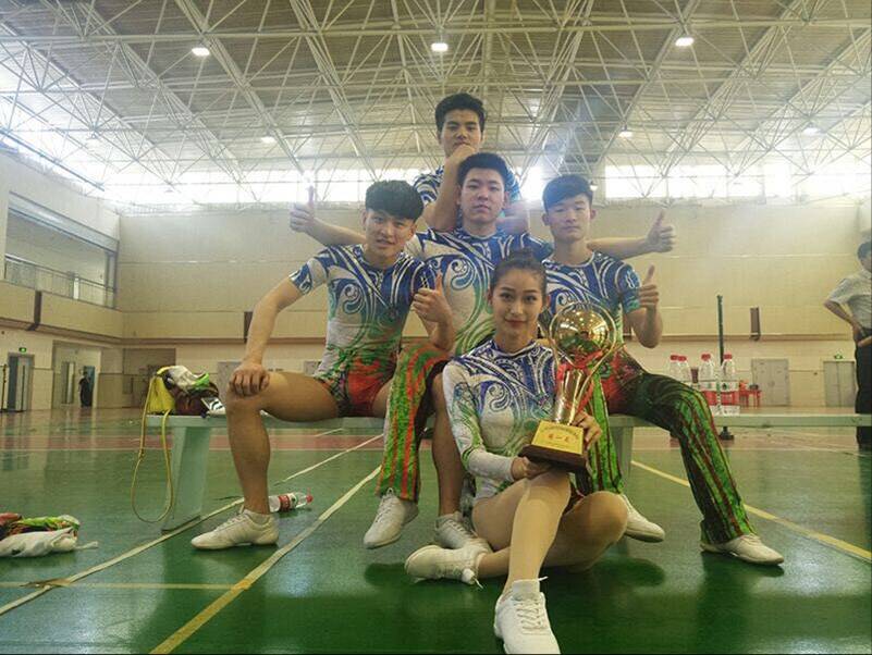 作为有氧舞蹈项目的第一个队伍上场,我校健美操队队员昂首挺胸、满怀自信地踏入了比赛场地。伴随着青春激昂的音乐响起,她们用高超的技巧、沉稳的步伐和默契的配合在舞台上展示着最具活力的团队和自己。新颖的编排让她们的表演看起来极具青春活力,整齐的步伐则更为整体效果加分。表演过程中完美的托举更是赢得了全场的掌声和喝彩。啦啦队在场外为台上奋斗的队员们加油助威,用视频和照片记录着队员们比赛时的精彩瞬间。经过奋力拼搏,最终我校代表队获得男子单人操第一名、女子单人操第一名、竞技五人操第一名、有氧舞蹈第二名、团体第一名的优异成绩。