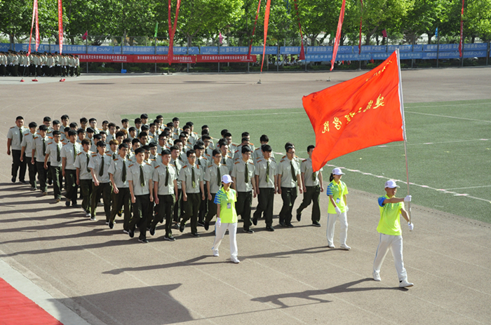 上午8:00,伴随着激昂奋进的《运动员进行曲》,各代表队运动员和比赛裁判员依次入场。师生运动员们精神饱满、意气风发,迈着整齐的步伐,进入运动场。在庄严的国歌声中,全体人员起立,鲜艳的五星红旗在运动场冉冉升起。