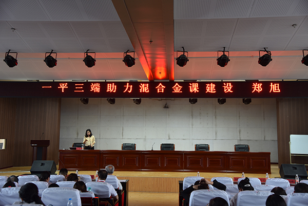 为进一步推进信息技术与教育教学深度融合,助力两校混合式教学模式改革。2019年7月8日下午16:00,由超星集团培训讲师郑旭为两校教师进行“一平三端助力混合金课建设”培训会,会议在我校综合实验楼12楼报告厅举行。本次会议由我校教务处石永超副处长主持。