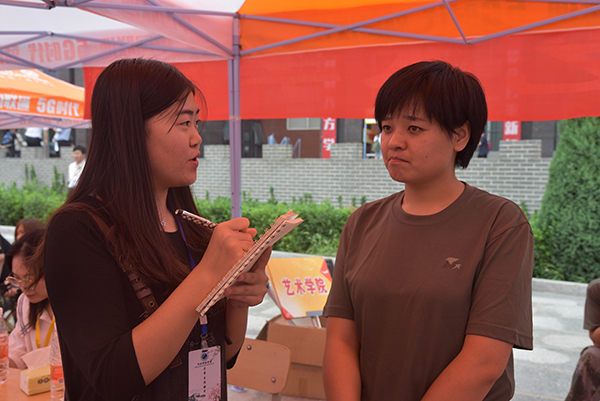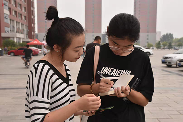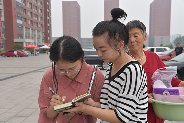 来自唐山的侯淑彤同学,她的高考第一志愿就选择了我们学校的护理专业。一起来送她的奶奶开心的说对学校十分满意,希望孙女在学校好好学习,好好生活。肖燏是来自邯郸的一名新生,她报考的是会计专业,对于大学最大的期望就是能努力顺利接本。从言语中感受到了她们对学校未来生活的憧憬和期待。