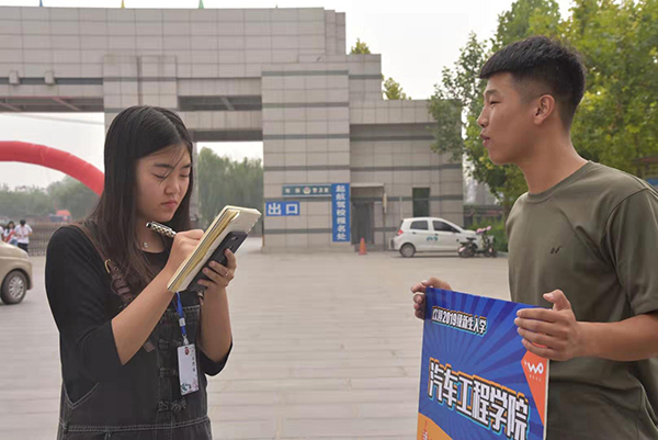 负责接待新生的学长学姐们也都时刻准备着。汽车工程学院于成龙、王玉磊、经济管理学院吕一辰表示,他们仅在一个上午就接待了十余位新生。回想起自己大一入学时,获得学长学姐及时的帮助,希望自己也能将这份爱与温暖传递下去。