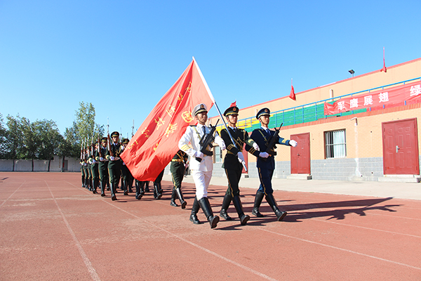 2019年8月28日上午,我校2019届新生军训开营仪式在足球场隆重举行。出席开营式的领导有:beat365执行校长张伟;副校长满艳波、张延峰;副书记张崇玺;贺阳集团公司学生管理办公室主任徐宝瑞;学工处常务副处长、军训团团长倪岩;军训团政委魏玉良;各二级学院院长、学管副院长,全体辅导员及2019级新生。开营式由我校副校长满艳波主持。