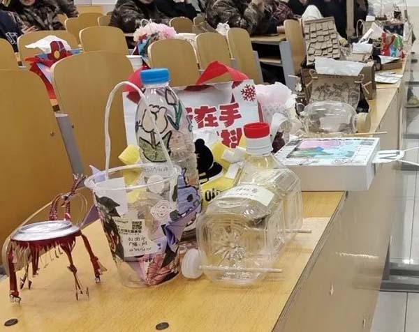 活动现场,五颜六色的废旧物品被巧妙地转化为富有创意和环保意义的手工作品,成为一道亮丽的风景线。